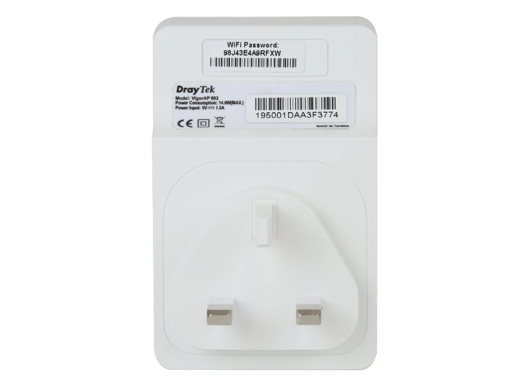 The VAP802 Mesh acts as a mesh node to connect to other access points, such as and a compatible DrayTek mesh root. VAP802-K eliminates ethernet cabling. Simply plug the VigorAP 802 in to a UK wall plug power socket to expand wireless coverage. No need for additional power adapters or cables.