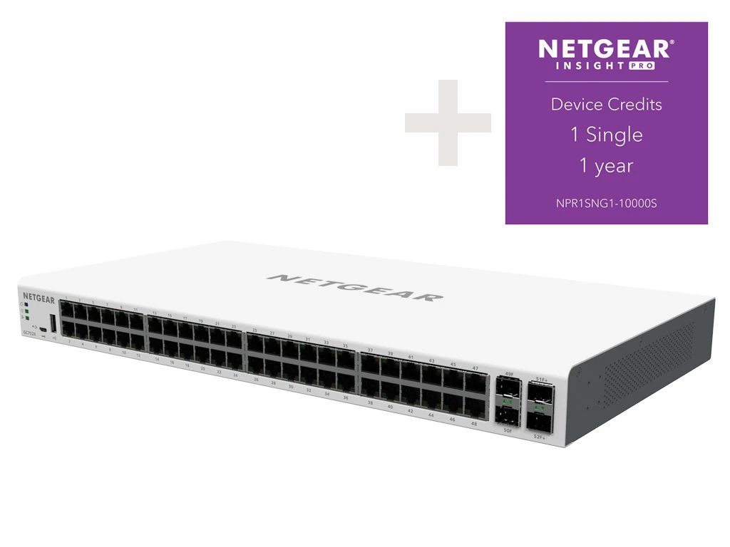 The Netgear GC752X Switch fundamentally changes the way you think of networks and IT. Using the Netgear Insight app with Insight Managed Smart Cloud Switches and Wireless Access Points provides Instant in-app discovery & set-up, Local or remote configuration and monitoring from your mobile device, PC, Mac or tablet, with centralised network configuration polices, Multi-site/remote network management and monitoring with single pane-of-glass view and Multi-switch/multi-port concurrent configuration using the Port Config Wizard.