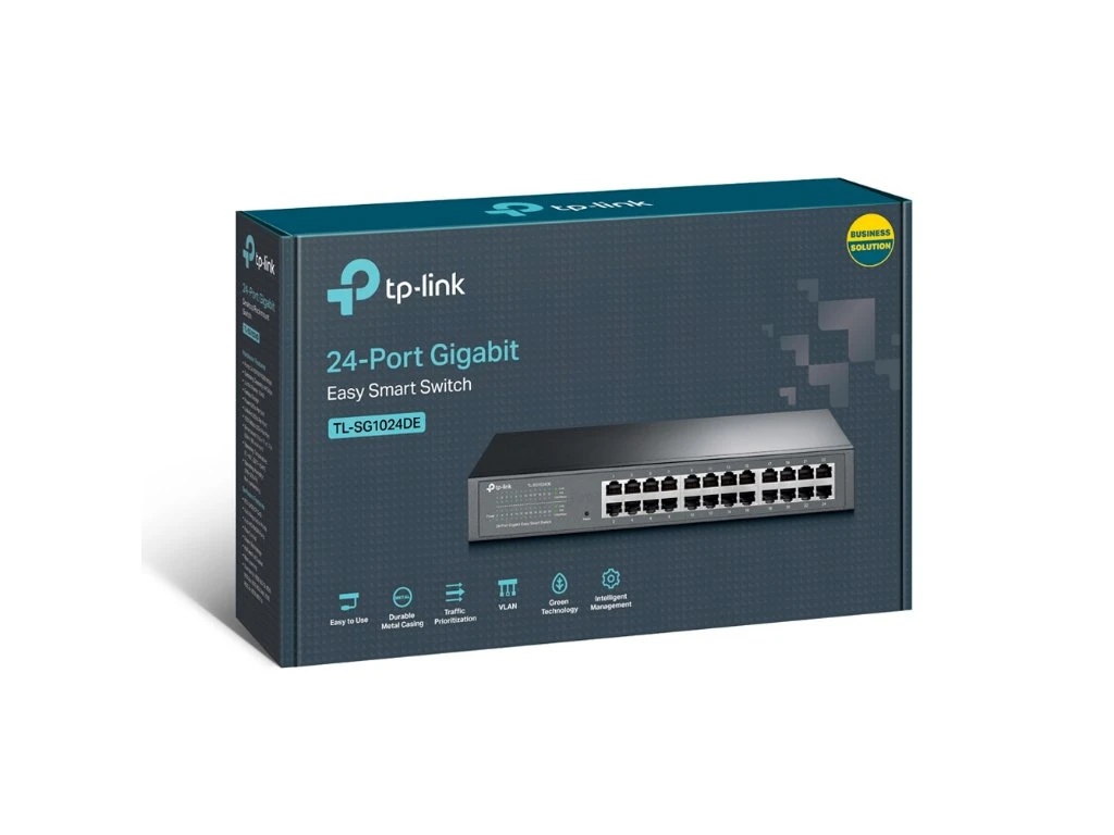The TL-SG1024DE 24-port gigabit easy smart switch is an ideal upgrade from an unmanaged switch, designed for small and medium business networks that require simple network management. Network administrators can effectively monitor traffic via port mirroring, loop prevention and cable diagnostics features. To optimize traffic on your business network, TL-SG1024DE offers both port and tag based QoS to keep latency-sensitive traffic moving smoothly and jitter-free. Additionally, port-based, tag-based and MTU VLAN can improve security and meet more network segmentation requirements. Moreover, with its innovative energy-efficient technology, the TL-SG1024DE can save up to 40% of power consumption, making it an eco-friendly solution for your business network.